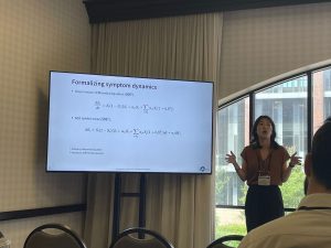 This award supported Kyuri’s participation in the 2025 IMPS conference in Minneapolis, where she presented her work on computational modeling of symptom dynamics. She developed a mechanistic model simulating how feedback loops within symptom networks can amplify and sustain depressive symptoms. The model captures bistability, tipping points, and hysteresis, offering insight into why certain symptom states persist. She also compared the model outcomes to empirical data, showing that connectivity patterns associated with persistent symptoms in simulations are also prevalent in real-world clinical data. This work contributes to bridging theory-driven simulations with data-driven causal inference to better understand and intervene in depression progression.